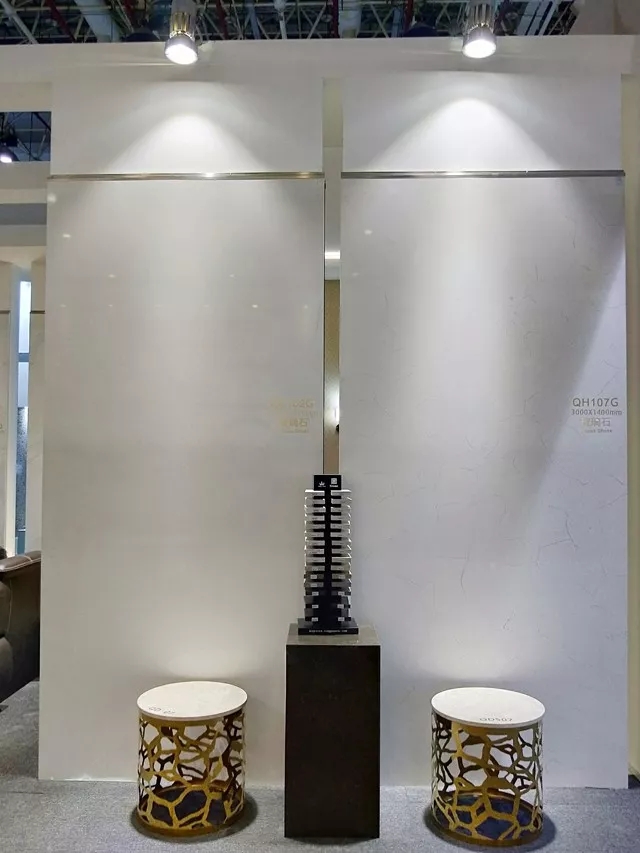 榮冠石材展出的每一款產(chǎn)品都是精挑細(xì)選,優(yōu)中選優(yōu)。尤其是1400*3000mm的玻璃石大板新品,看上去晶瑩剔透,光澤度高,用手觸摸更能體現(xiàn)細(xì)膩光滑的質(zhì)感。