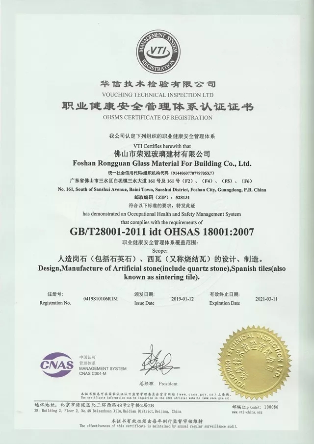 2019年1月9日,我司取得了相應(yīng)的ISO體系認(rèn)證證書,分別是質(zhì)量管理體系(ISO 9001:2005)、環(huán)境管理體系(ISO14001:2005)和職業(yè)健康安全管理體系(ISO18001:2007)。