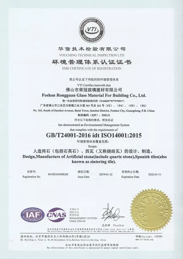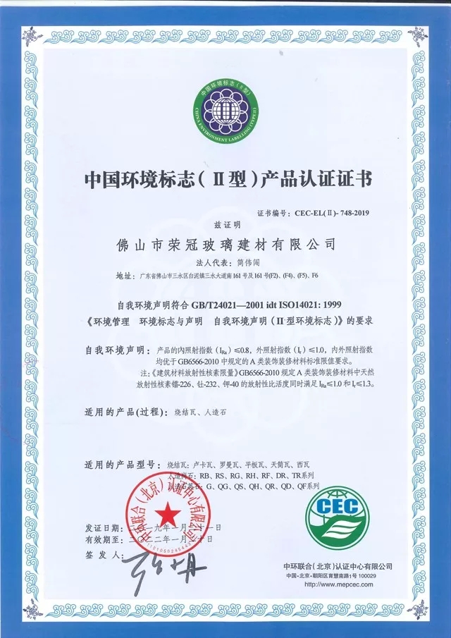 2019年1月21日,榮冠公司再接再厲,陶瓦和人造石產(chǎn)品再次順利通過中環(huán)聯(lián)合(北京)認(rèn)證中心的“十環(huán)認(rèn)證”,體現(xiàn)了榮冠建材帶給客戶的不僅僅是產(chǎn)品的美觀和實(shí)用,更是實(shí)在的安全、健康和放心。